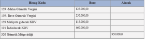Yukarıdaki tabloda gözetim farkına ait gümrük vergilenin eklenmesiyle KDV matrahı 575.000,00 TL olmuştur. Dolayısıyla Gözetim uygulamasına tabi ürüne ait indirilemeyecek KDV (575.000,00 * 0,20) 115.000,00 TL’dir.