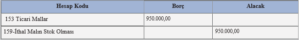 İthal malın stoklara girmesi sırasında yapılacak muhasebe kaydı