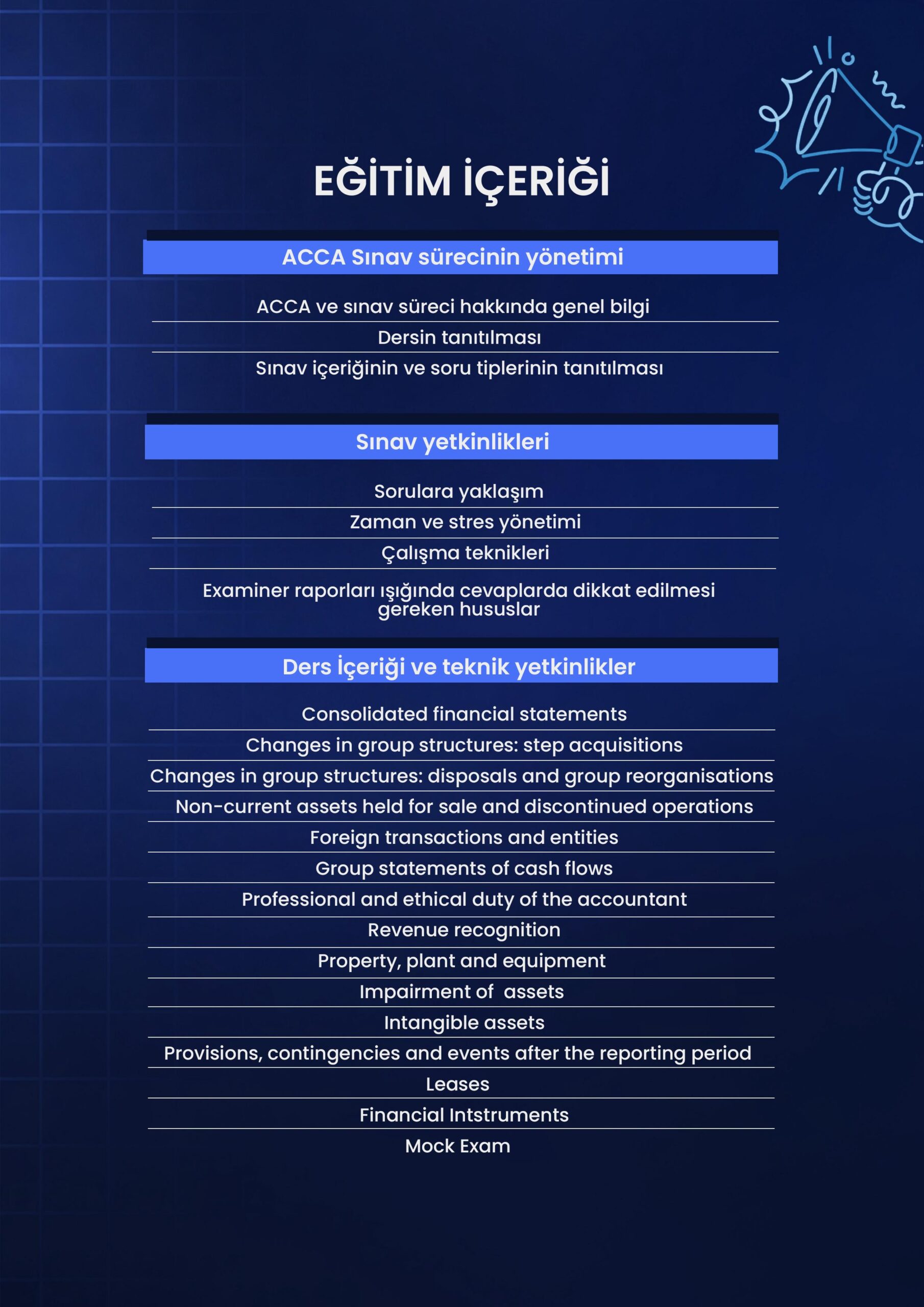ACCA sınavlarına hazırlanan adaylar için 3 tam gün – toplam 24 saatlik yoğun bir Strategic Business Reporting (SBR) hazırlık programı başlatıyoruz.
